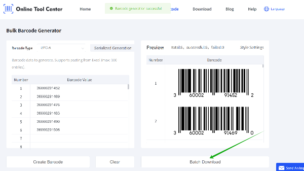Бесплатно генеришите до 100 ЕАН-13 или УПЦ-А баркодова. Копирајте податке из Екцела, изаберите свој формат и преузмите баркодове спремне за штампач у једној поштанској пошти.